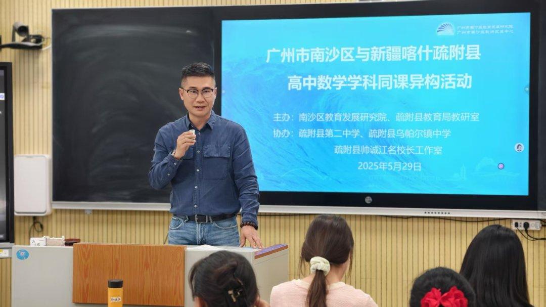 近日,由广州市南沙区教育发展研究院与喀什地区疏附县教育局教研室联合主办,疏附县帅诚江名校长工作室、疏附县第二中学、疏附县乌帕尔镇中学联合承办的“广州市南沙区与新疆喀什疏附县高中数学学科同课异构活动”顺利举行。