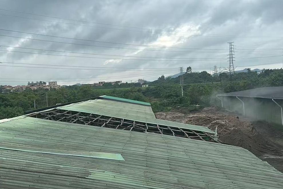 在佛山,大风导致某企业客户的厂房顶棚局部撕裂,雨水倒灌导致生产附加物水浸受损。理赔人员迅速调配最近的专业公估人员第一时间抵达现场查勘定损,协助客户施救未受损物资,同步开启绿色通道,助力企业尽快恢复生产。