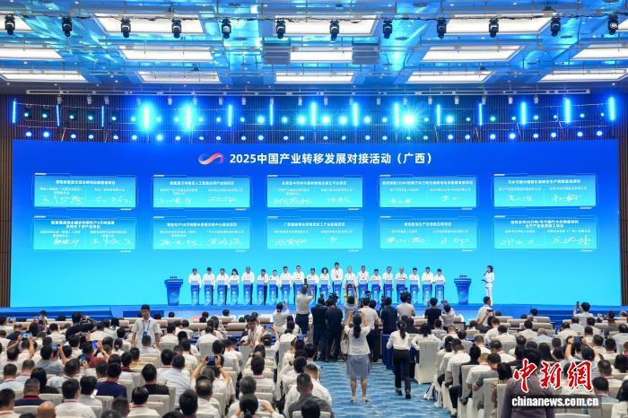 以“AI赋能谋新篇 产业协作创未来”为主题的2025中国产业转移发展对接活动(广西),20日在南宁举行。本次活动共促成签约项目296个,签约金额2173亿元,涉及人工智能和新一代信息技术、高端装备制造产业、新材料产业、特色轻工产业等领域。