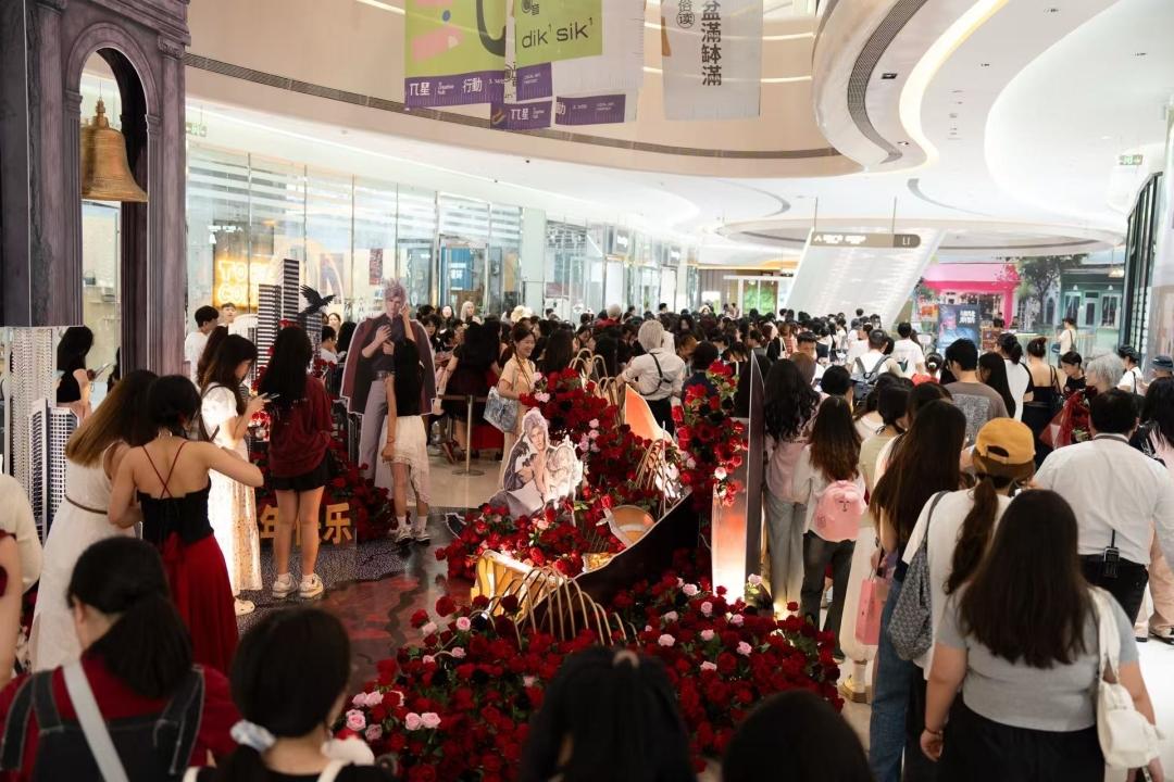 同日在商场剧院上演的悬疑爱情音乐剧《Jessica》也备受热捧,通过音乐与剧情展现爱与信念的力量,为七夕增添艺术气息。“我们特意选在七夕来看音乐剧,感觉比单纯吃饭更有趣。”市民陈先生携女友观剧后表示,“商场活动丰富了消费场景,现在我们也更愿意为体验买单。”当晚,广州天河领展广场的户外舞台则邀请了人气厂牌ONCE AGAIN现场演出,这场七夕港式浪漫音乐会叠加上广州首场爱心烟花秀,让不少市民直呼浪漫。