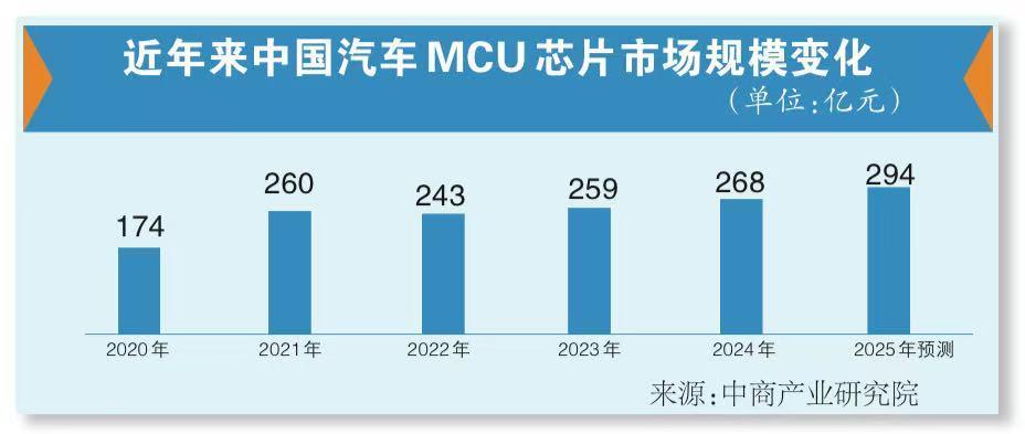 在国内,MCU芯片、计算芯片 (SoC)和模拟芯片的需求不断扩大。中商产业研究院发布的报告显示,2024年中国汽车MCU芯片市场规模达到268亿元,较上年增长3.47%,2025年中国汽车MCU芯片市场规模预计将达到294亿元。2024年中国汽车模拟芯片市场规模已达371亿元,到2025年市场规模将达449亿元。