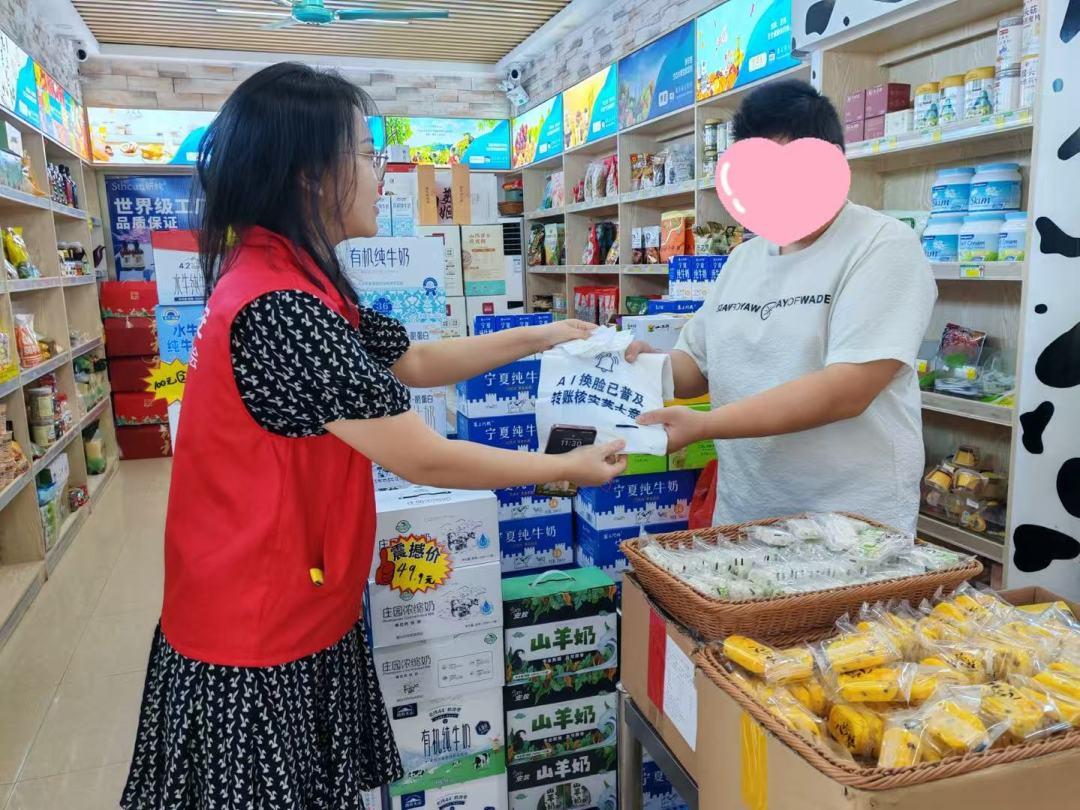 来自平安融易惠州分公司的志愿者们深入惠州西湖景区周边、江北商业圈等个体商铺集中区域,逐户向便利店、餐饮店、服装店等商户派送胶袋,同结合惠州本地曾发生的“虚假贷款中介”“商铺经营贷诈骗”等案例,用通俗语言向各店主讲解防范要点,累计覆盖商户超60家,派送反诈胶袋3000余个。