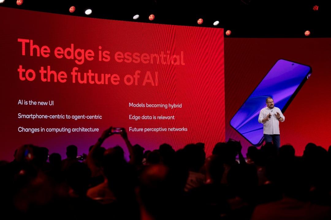 尤其值得关注的是,安蒙提出了塑造AI未来的六大核心趋势——AI是新的UI(用户界面),从以智能手机为中心转向以智能体为中心,计算架构迎来变革,模型混合化发展,边缘数据相关性增强,迈向未来感知网络。这些趋势不仅为行业提供了前瞻性洞察,也进一步明确了高通在AI领域的战略方向。