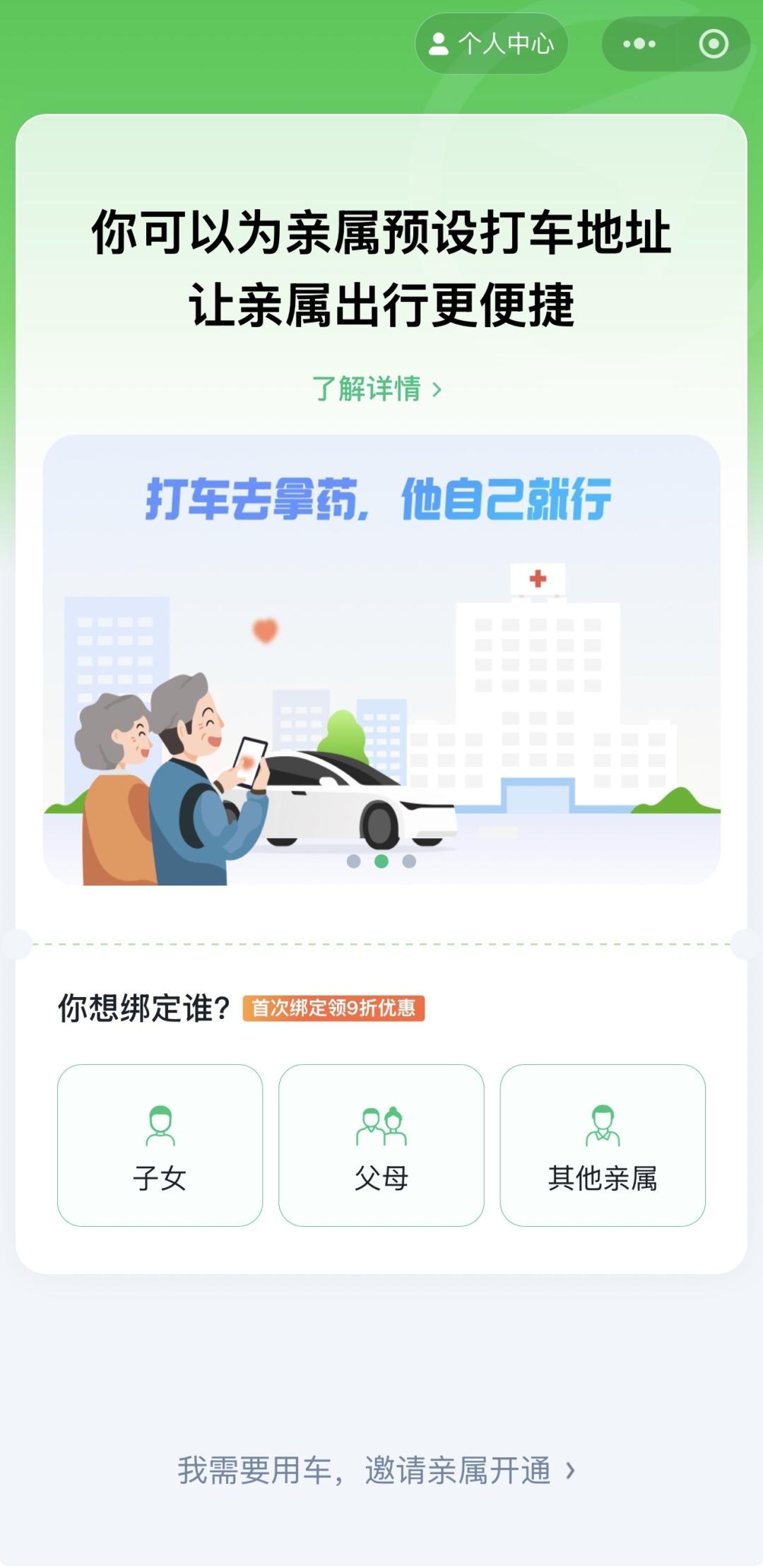 记者从腾讯了解到,9月26日,腾讯出行服务上线“亲属打车”小程序,聚焦帮助老年人解决线上打车不便的问题。用户打开微信,搜索“亲属打车”即可体验。