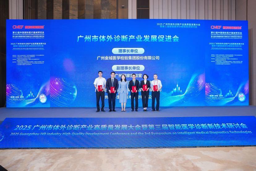 促进会第一任理事会理事长单位由金域医学担任,梁耀铭当选理事长;广州国家实验室、广州医科大学附属第一医院、广州生物医药与健康产业投资有限公司和广州万孚生物技术股份有限公司当选副理事长单位。同时,金域医学被授为“广州市体外诊断产业孵化中心”挂牌单位,达安基因被授为“广州市体外诊断产业园”挂牌单位。