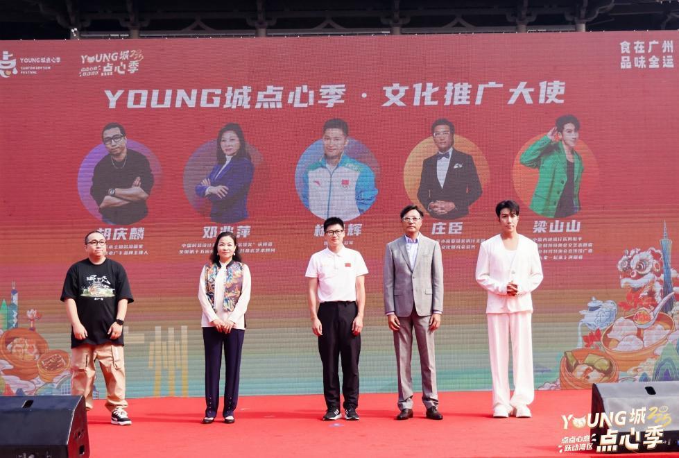 今年点心季特别邀请跳水奥运冠军杨景辉,中国时装设计最高荣誉“金顶奖”获得者邓兆萍,中国烹饪协会小食委员会执行主席、广东省食文化研究会会长庄臣,中国内地流行乐男歌手梁山山,广州本土知名漫画家胡庆麟担任点心季文化推广大使。五位推广大使皆是广州人,他们将以其在不同领域的深厚影响力,共同为家乡粤点文化打Call。