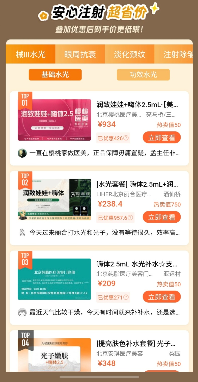 为响应用户需求,美团医美于近日上线了械三水光安心购专区,为用户提供正规机构、正规医生和正规水光产品。用户只需在美团App搜索“械三水光安心购”,即可直达专区。
