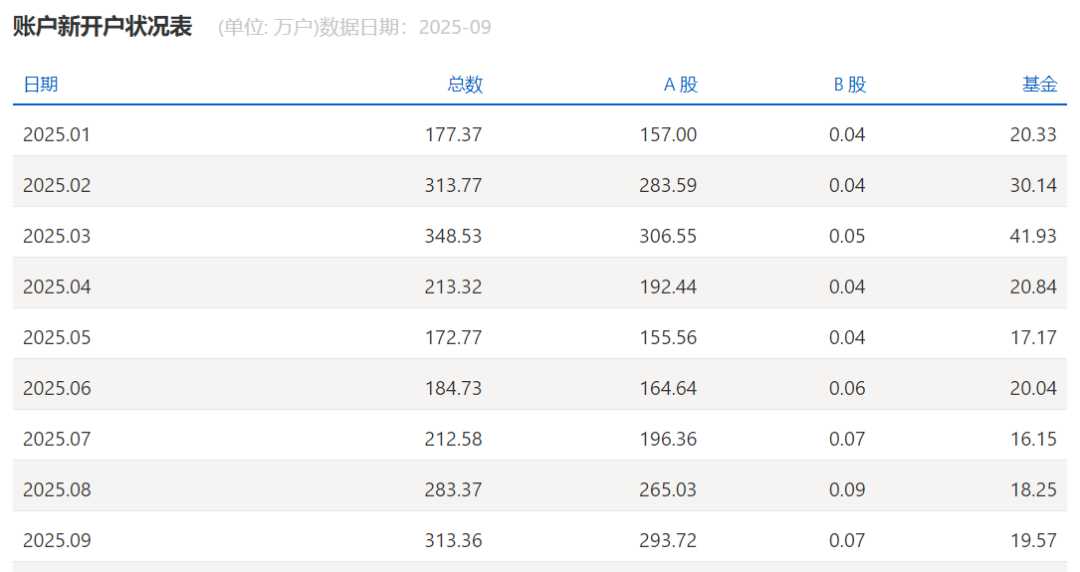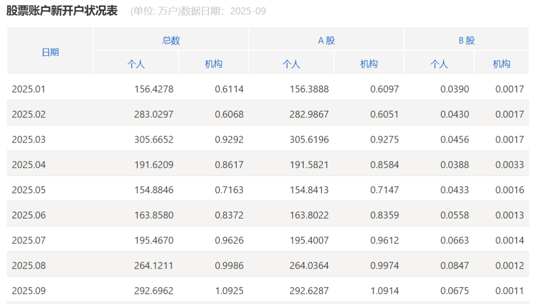 10月10日,上交所发布最新数据,2025年9月A股新开户293.72万户,同比大幅增长61%。2025年前三季度已累计新开2014.89万户,同比增长50%。