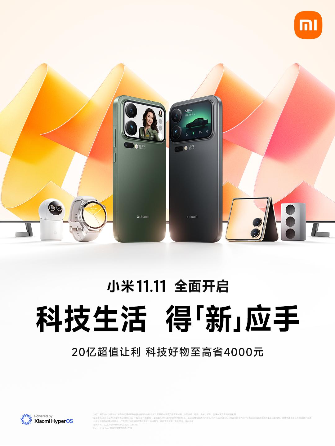 在手机产品方面,多款热卖机型将在双11期间进行让利,比如小米大折叠屏手机MIX Fold 4直降千元, 小米15 Ultra 也已官宣直降500元,叠加补贴后价格更给力。