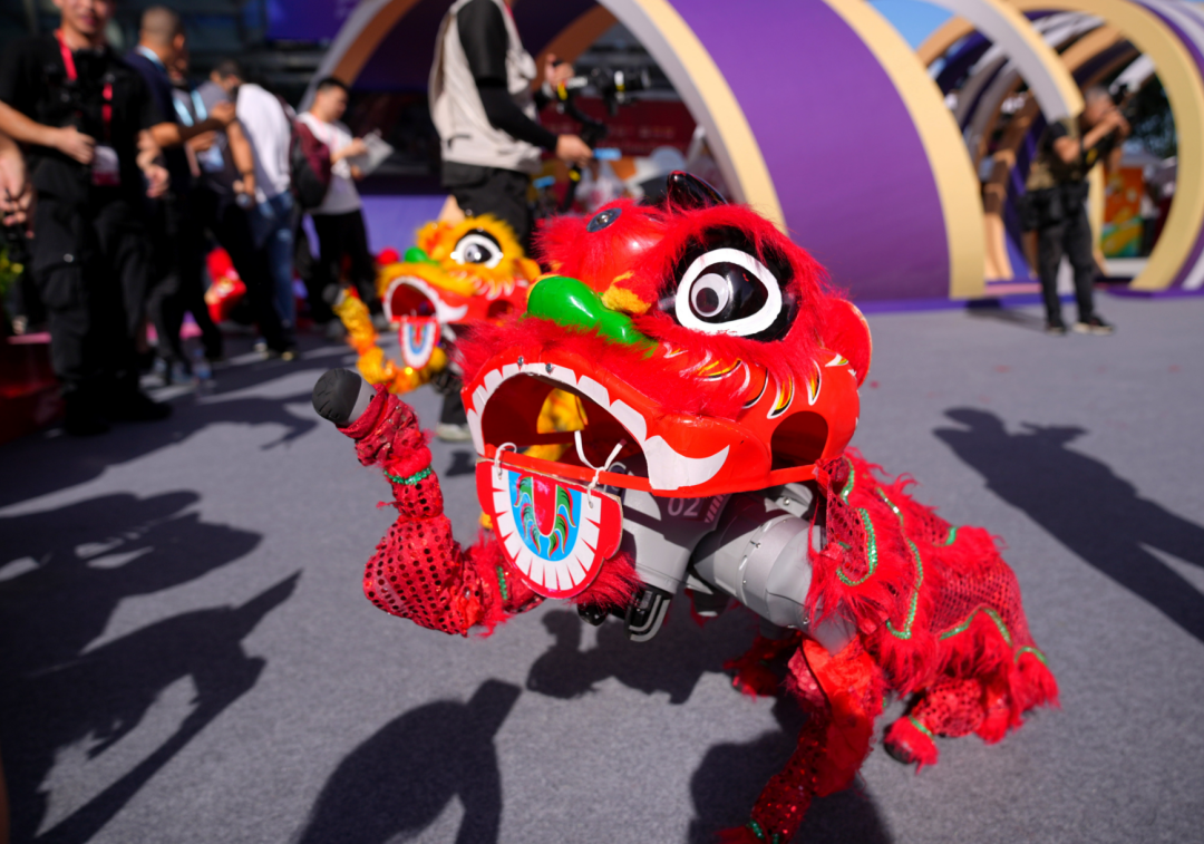 将传统文化与现代科技结合的机器人舞狮。