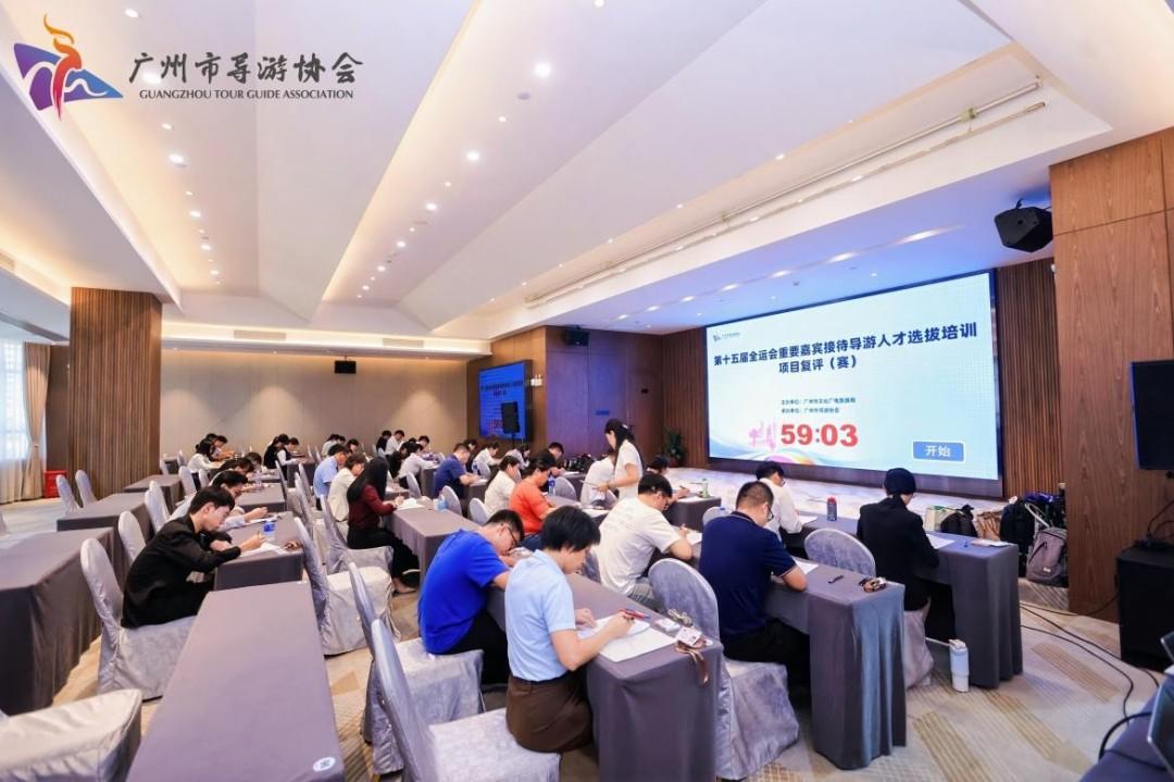 为充分展现广州城市形象与文旅服务水平,高标准完成第十五届全运会接待服务工作,由广州市文化广电旅游局主办、广州市导游协会承办的“第十五届全运会重要嘉宾接待导游人才选拔培训”活动正在紧锣密鼓进行中。经过发动海选、推荐报名、星级导游评定等初评环节,从300余名参赛导游选手中选拔出100名导游选手参加复评(赛)。近日,“第十五届全运会重要嘉宾接待导游人才选拔培训项目复评(赛)”在广州三寓宾馆举办,百名初评晋级选手中脱颖而出的选手齐聚赛场,通过笔试与现场讲解的双重考验,角逐45个晋级终评(赛)的宝贵名额。