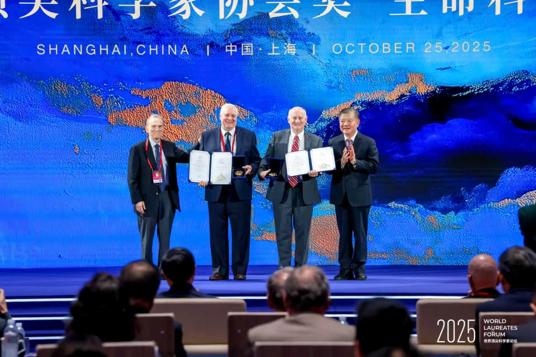 颁奖典礼环节中,1982年菲尔兹奖得主丘成桐和2013年诺贝尔生理学或医学奖得主、2025顶科协奖“生命科学或医学奖”遴选委员会主席兰迪·谢克曼(Randy W. SCHEKMAN)致颁奖词,与中国科学院院士陈竺共同为获奖者们颁奖。