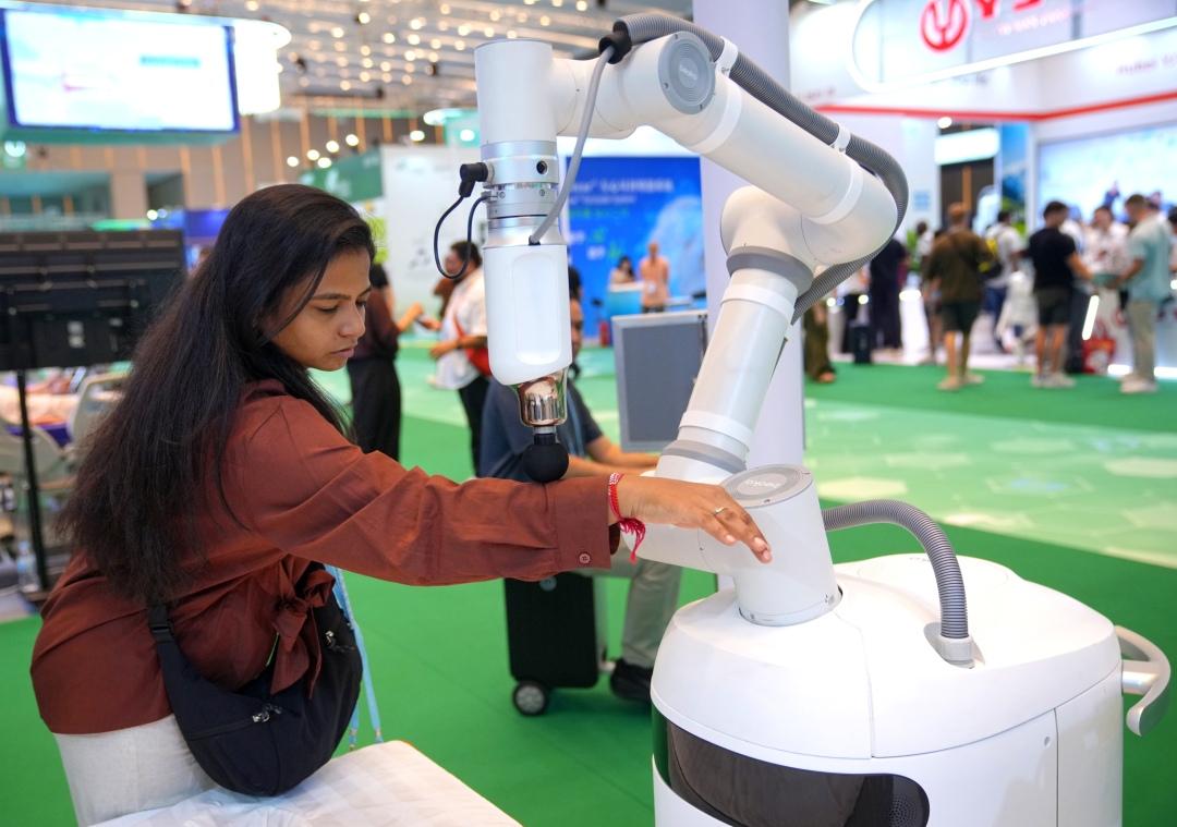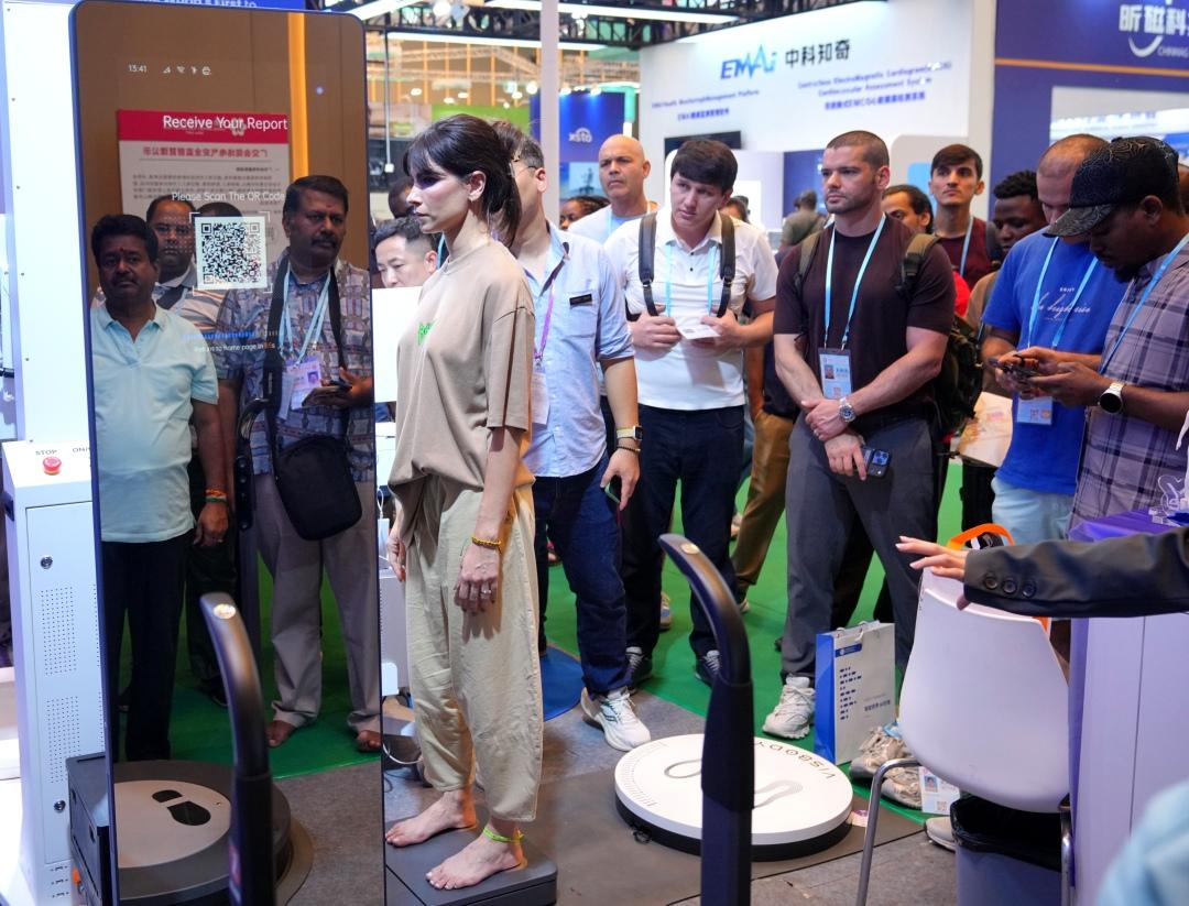 “这款智能脉诊仪完全模拟老中医的三指搭脉,通过对脉位、脉率、脉力等参数的测量与计算,模拟传统的‘寸口三部分候脏腑’测试法。”技术人员向围观采购商演示设备如何可视化展现28种脉象结果,并通过人工智能算法给出诊脉结果和调理方案。“这不仅是技术的进步,更是中医文化的创新传承。”一位来自欧洲的采购商感叹道。