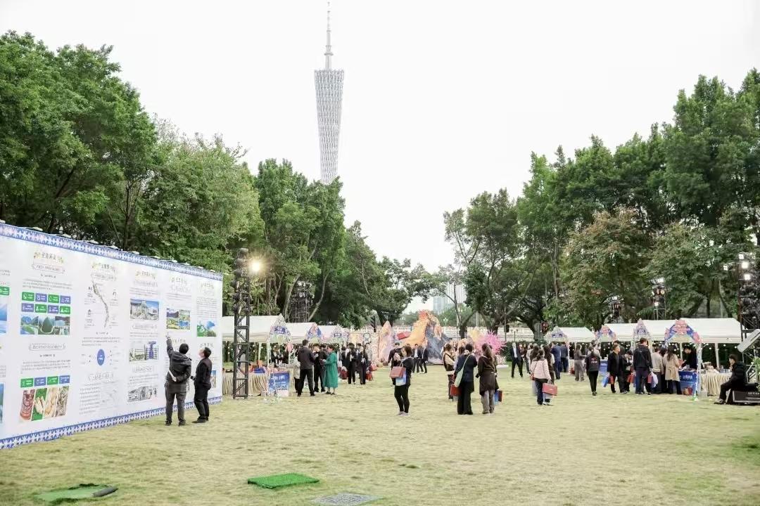 本次活动创新采用“主会场+户外分会场”双会场模式,其中户外分会场别出心裁地设置在城市中心草坪,毗邻珠江,遥望广州城市地标“小蛮腰”。来自林芝的10余家企业带来了80多种特色产品,包括被誉为“高原人参”的藏黄精、独具特色的白肉灵芝以及松茸等林下资源产品。这些来自雪域高原的天然珍品,让广州市民近距离感受到林芝的特色产品。入夜,南迦巴瓦雪山主题展板亮起灯,与珠江彼岸的广州塔交相辉映,营造出“粤林同框”的独特景观。