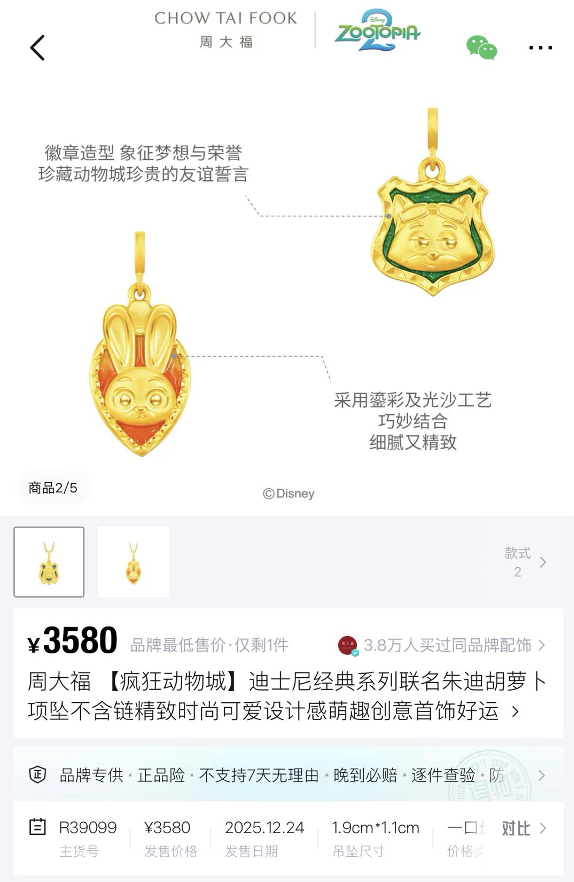 (周大福推出《疯狂动物城2》联名“痛金”)