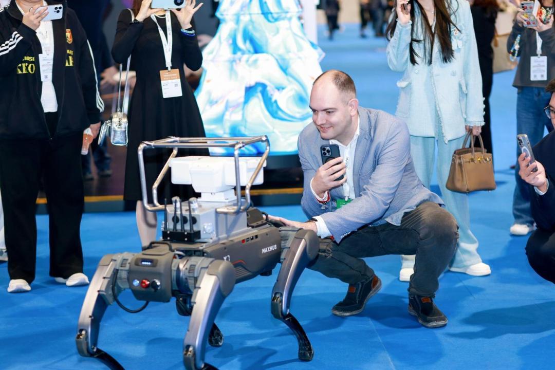 本次 AIE 展会,视源股份全栈自研的 MAXHUB X7 四足机器人首度登陆港澳。据介绍,该产品搭载全自主研发的电驱动关节和自适应步态算法,可稳定穿越35°陡坡、台阶等复杂地形,IP66防护等级及-20℃至40℃宽温域能力,能适配电力巡检、应急救援等极端环境,实现“以机代人”的安全升级。