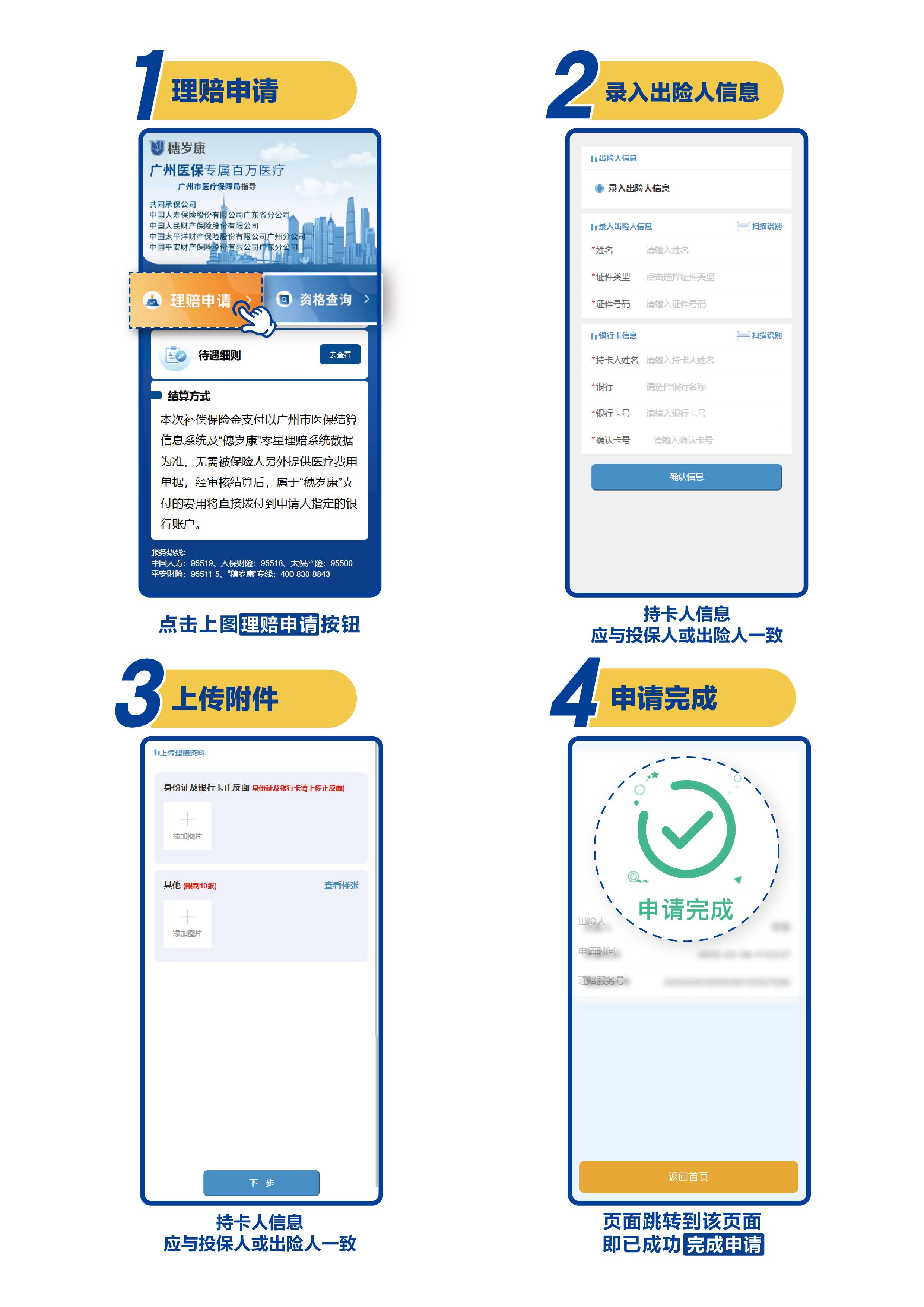 据悉,本次扩大政策享受面申请理赔截至2026年8月31日24时,符合条件但尚未申请的市民可尽快申请。申请路径为“穗岁康”公众号-服务中心-理赔服务-扩面服务,按指引填写相关信息及上传身份证(正反面)、银行卡(正反面、需注明开户行)即可。