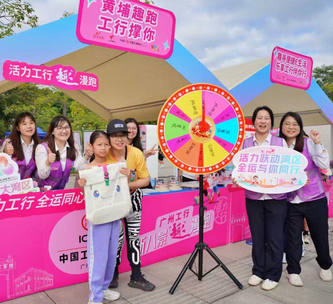 两届世界蹦床锦标赛冠军蔡琪子与广东广播界资深主持人林荣骏联袂担任漫跑大使,工行君、工行妞与咖宝车神分列赛道两侧,与选手击掌互动。这种沉浸式IP互动体验,让整个赛事既保持了体育竞技的专业性,又增添了童趣与温度。