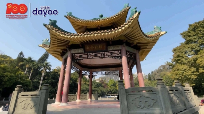 如今,广州起义烈士陵园有一座亭,亭上悬挂着董必武题书的“血祭轩辕”牌匾,这是为了纪念周文雍和陈铁军两位烈士视死如归的大无畏精神而修建的。