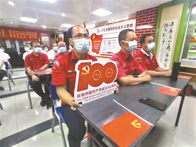 广州市荔湾区组织全体党员集中收听收看庆祝中国共产党成立100周年大会直播。广州日报全媒体记者廖雪明通讯员荔宣摄