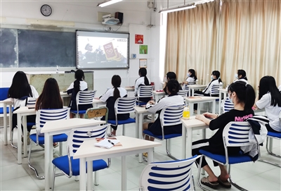 广州市工贸技师学院学生观看庆祝中国共产党成立100周年大会直播。广州日报全媒体记者廖雪明 通讯员穗人社宣摄