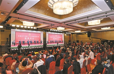 10月19日,中国共产党第二十次全国代表大会新闻中心举行集体采访。图为分会场。新华社发