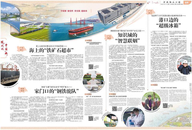 今年7月底,一艘满载40万吨铁矿石的巨轮从巴西横跨近10000海里来到广东湛江港。广州日报“现代化中国‘画’”走读小分队也来到这里,和这个巨无霸来了一场“巧遇”。