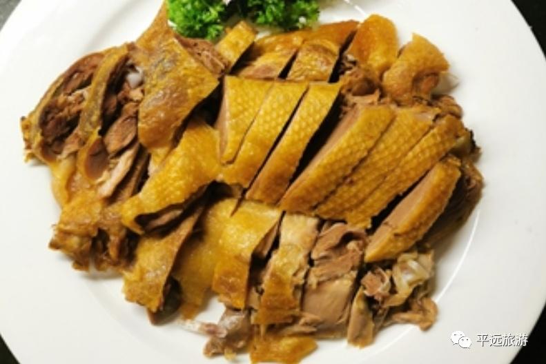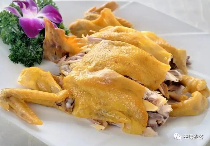 平远本地的一道传统美食。选用平远本地土鸡为原料,把用调味料腌制好的土鸡用砂纸包裹,放入炒制好的砂锅盐堆里用小火焗制而成,做好的盐焗鸡外表金黄诱人,骨香味浓,爽滑鲜嫩,让人入口难忘。