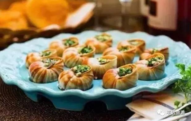 平远县八尺镇的一道特色菜。在八尺镇八尺村养殖,因其头、腹、足洁白如玉,故称为“中华白玉蜗牛”,简称“白玉蜗牛”,系中国独有品种,以人工养殖为主。白玉蜗牛肉质肥厚,营养丰富,高蛋白,低脂肪,胆固醇趋向于零,富含20多种氨基酸。