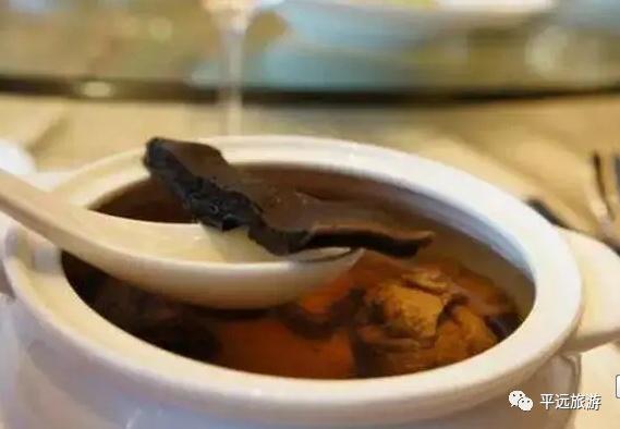 平远本地的一道传统美食。选用当地土猪的猪大骨、猪肉、猪肚、猪心、猪肝等部位,隔水炖成汤,因其用料丰富,汤汁醇浓而不腻,肉香滑而不渣。