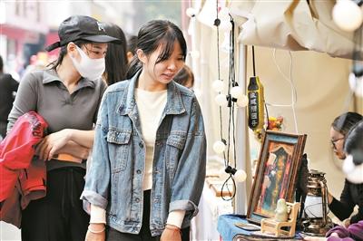 1月5日,昔日“平淡”的太平路焕然一新,太平路市集、水岸中段的舞台、沿路的文化展墙,头顶的榕树全都换上年轻的“妆容”,映入满眼的朱璟红与山矾白。水道边,约50家商户沿太平路一字排开,气势恢宏。本次大圩PLUS集市商品包含文化综合、美学生活、艺术创意、美味时光、匠心手作五大类别。有意思的是,备受年轻人喜爱的国潮文化在这场市集中得到充分呈现。民谣歌手登上古老的“猪栏桥”,演绎最新国潮音乐。大圩粤曲演出团队也登上舞台,载歌载舞,欢乐趁圩。“融旧纳新”成为本次市集活动的最大特点。延续近400年历史的传统“圩日”和代表新商业形态的文化集市,在这里实现了有效融合。