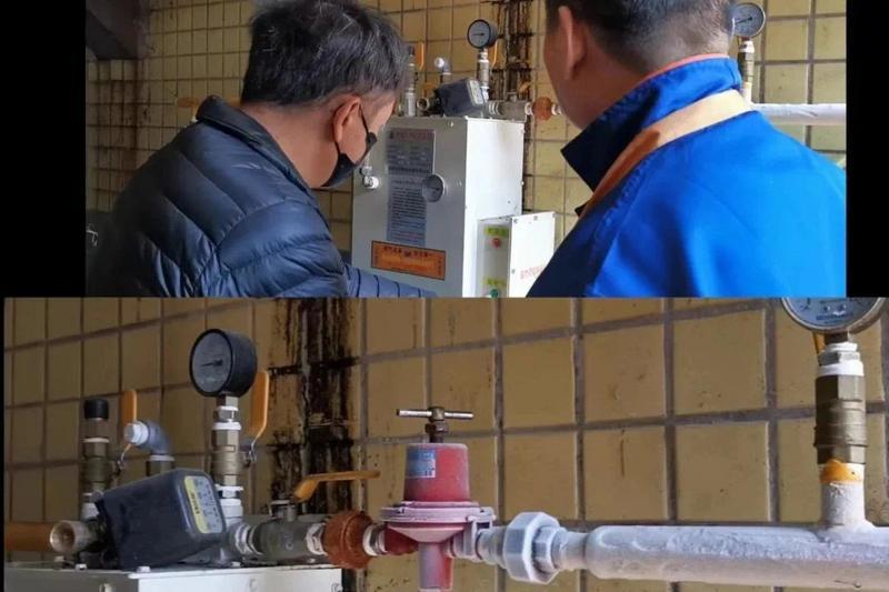 1月4日,第十考核巡查组在惠州博罗县明查某项目饭堂,发现工作人员不熟悉燃气使用常识,炒菜时未开启电源启动气化器,导致气化器出口管道结冰,易发生液化石油气爆燃。