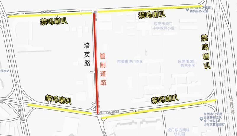(二)交通管制措施:1月12日8:30—11:50,培英路虎门中学路段实行全封闭,长德路、教育路、滨海湾大道校园周边路段禁鸣喇叭;