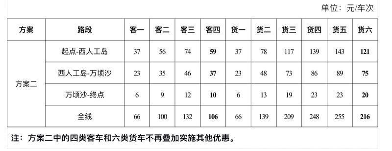 注:方案一中的三类客车和四类客车不再叠加实施其他优惠。