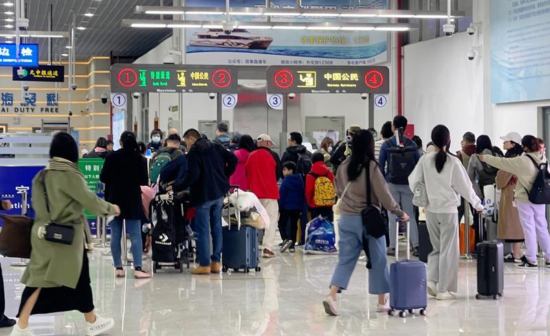 眼下春节临近,港人北上与内地旅客南下愈加频密,九洲边检站将持续关注口岸通关情况,提前做好勤务统筹,常态备足现场警力,及时开足查验通道,为老幼病残孕等特殊旅客提供通关便利,在坚决维护国门口岸安全稳定的同时,也以优质高效的通关服务为地方经济社会高质量发展护航。