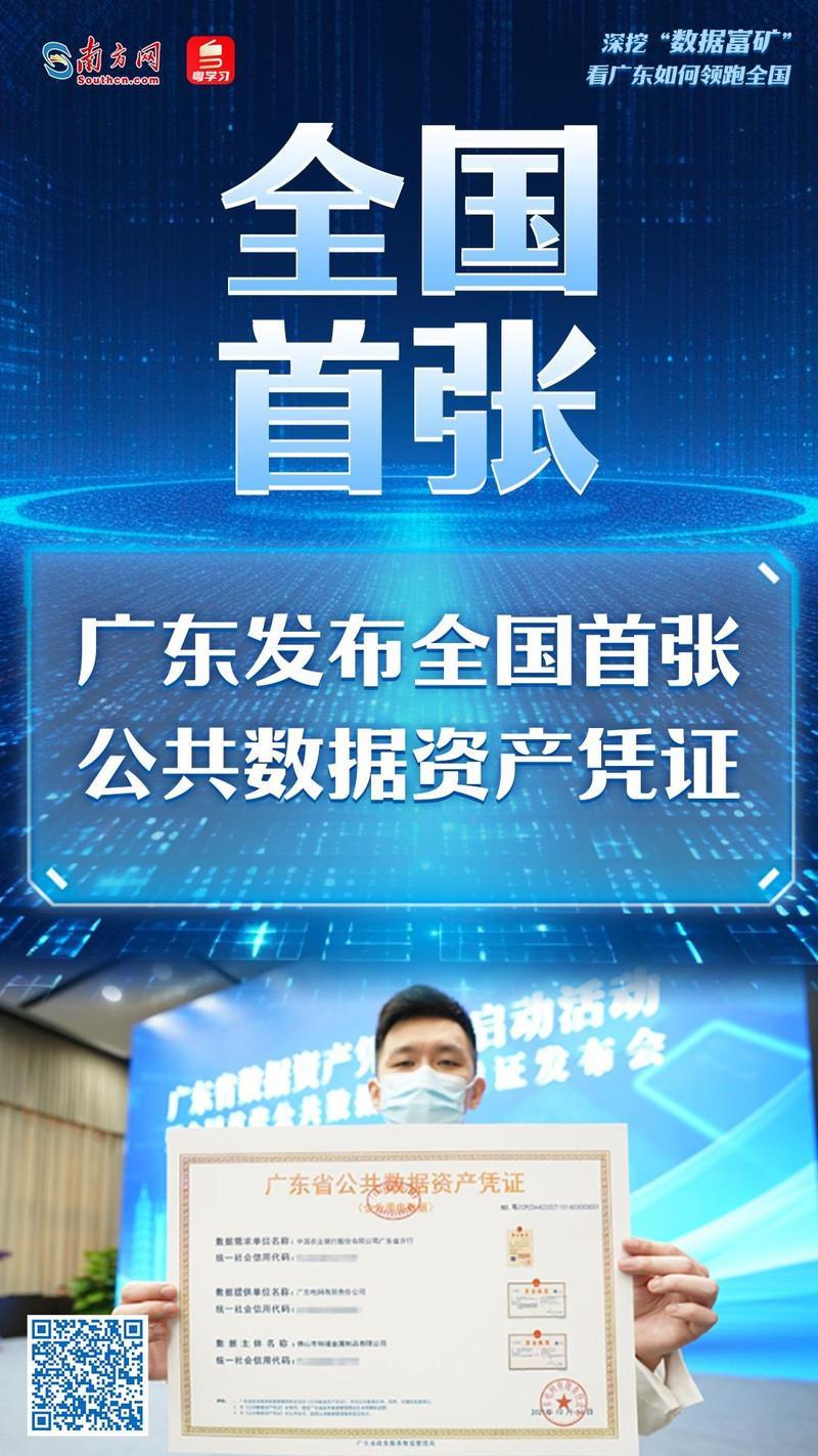 2021年10月16日,广东省数据资产凭证化启动活动暨全国首张公共数据资产凭证发布会在广州召开,现场发布全国首张公共数据资产凭证。