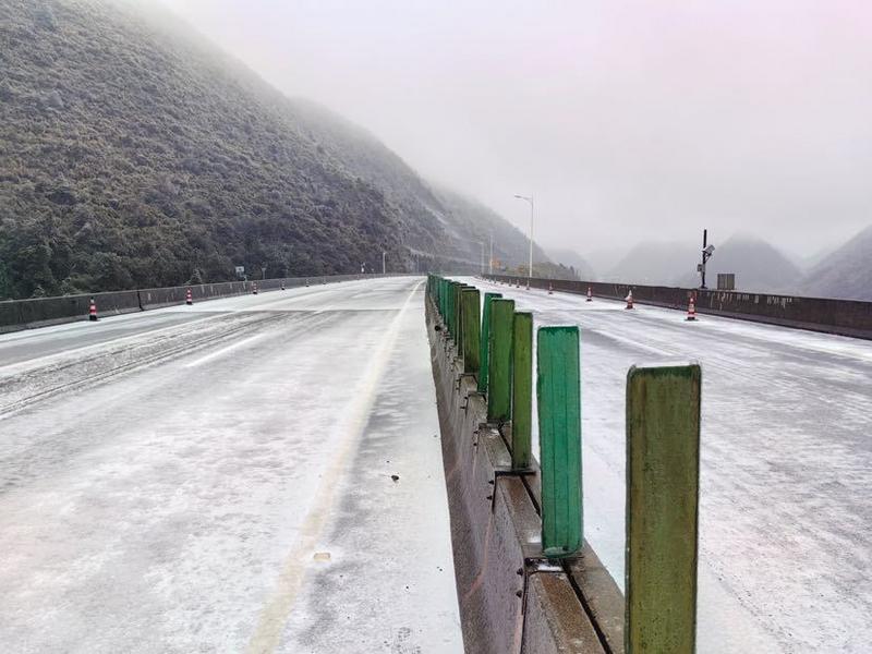 目前,已在京珠北、乐广北高速部分路段,九嶷山隧道至丰阳站路段预防性撒布融雪剂,预防道路结冰。