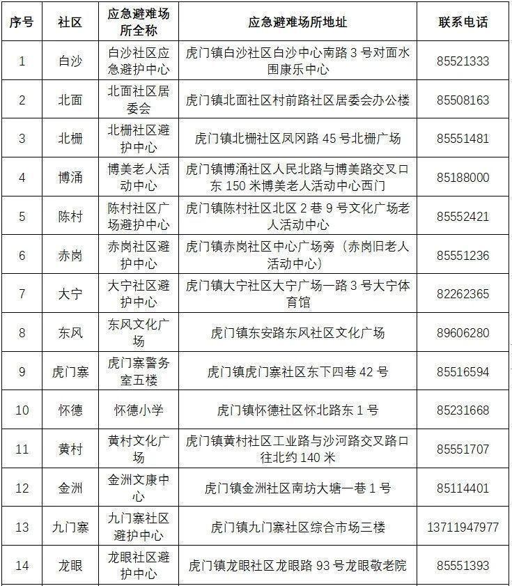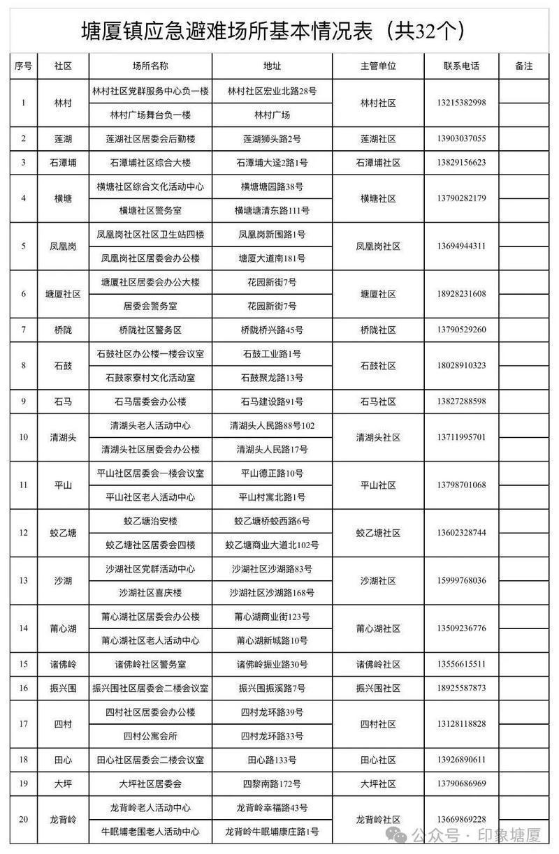 除了以上镇街(园区)之外,全市更多的应急庇护场所开放,有需要的群众可以与所属村(社区)联系,或及时关注当地官方媒体,具体了解就近应急庇护场所情况。