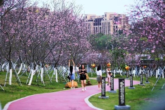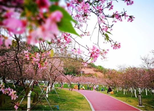 廉江樱花公园位于城区塘山岭南麓,是国家3A级旅游景区,园区总面积530多亩,整个园区以林木、花草、水体为自然景观,种植樱花1820棵。在樱花盛开时,公园漫山遍野一片绯红,每天都有数以万计的游客慕名而来。