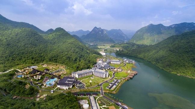 蓝山源岭南东方温泉酒店位于韶关市乳源县大桥镇岩口村,度假村依山面湖,山色空濛,湖光潋滟,集天然温泉、度假住宿、中西餐饮、商务会议和休闲康乐于一体,在群山环绕中,忘却世间烦恼。