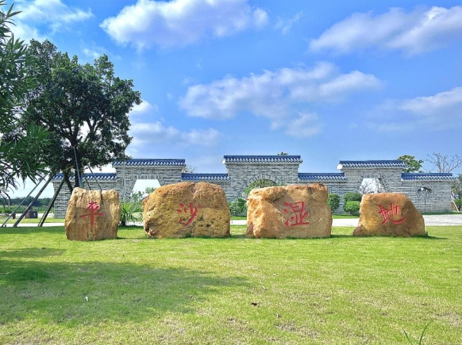 平沙湿地公园水系面积128.3万平方米,水上游船游览路线长约8千米,公园绿化种植总面积约40.8万平方米,植物品种多达36种,园内建筑均为苏州园林式仿古建筑,是亲近自然、休闲娱乐、释放压力的好去处。