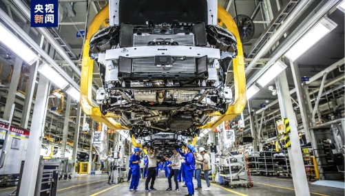 △全国每4辆新能源汽车就有1辆是“广东造” 图为广汽埃安新能源汽车生产线