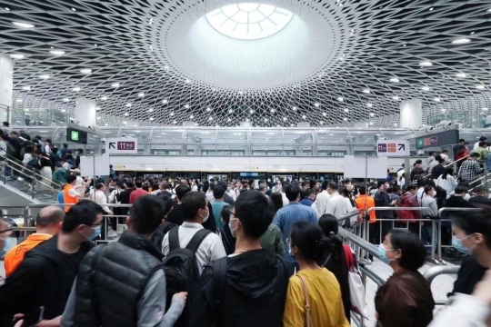 在客流引导方面,深铁集团也提前部署了多项保障措施。包括实时监测线网客流密度,科学、动态调整列车开行方案;重点关注火车站、高铁站、机场等客流中转枢纽站点,视情况采取管控措施;合理安排人员排班,做好设备检修及应急物资准备;增设党员、志愿者流动服务人员,全方位做好运营保障工作。