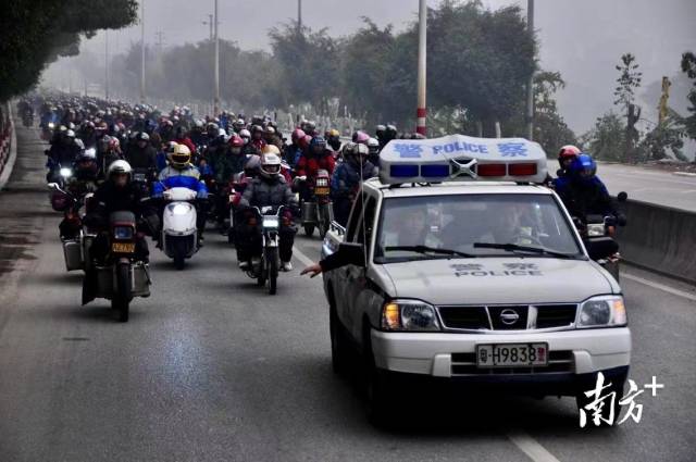 随着社会经济的发展,“摩托大军”的人数在逐年减少。但“粤式暖流”的护航始终进行且不断升级,这是用工大省广东一以贯之的春运担当。