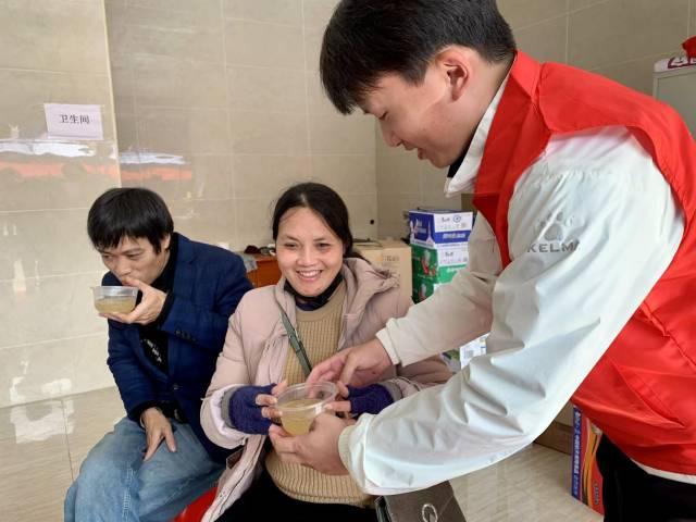 2024年2月1日,云浮市324国道石城镇茶洞路段设置有春运便民服务点,骑摩托车返乡的梁先生表示,这里有水、有粥、有面食等服务,很温暖。云浮市云安区宣传部 供图