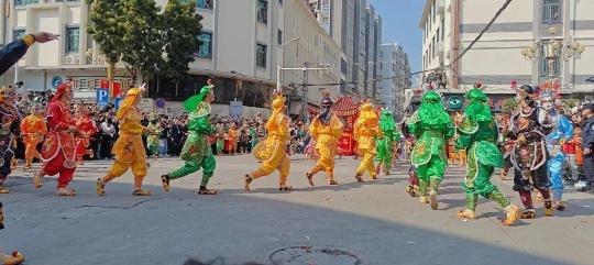 市区普宁英歌、潮州大锣鼓巡游等迎春文娱举行