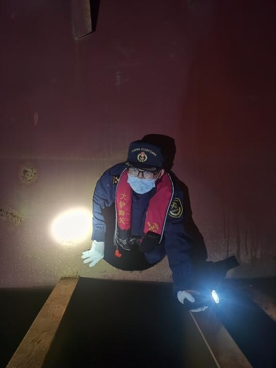海关监管艇开足马力高速前进,寒冷的海风刮过关员们的脸庞,凌厉的海浪将监管艇抛起又甩下。管仁杰和邹伟明登上待检船舶,两人分工协作,查验单证、巡查船体、清点货柜,对油舱、机舱等位置进行核查。在船上走了一圈后,管仁杰决定对船舶两侧空气舱进行重点排查。