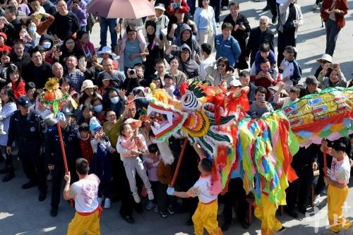 2月11日下午,在中山影视城中字广场,一场精彩的非遗展演在欢快的锣鼓声中拉开序幕,来自全国各地的游客将非遗展演现场团团围住,品尝“非遗大餐”,过精彩文化大年。来自东北的游客王先生,一边认真观看着表演,一边用摄像机记录精彩的画面。他激动地说:“我还是第一次现场观看这么多种精彩的舞龙展演,真是让人大开眼界。”