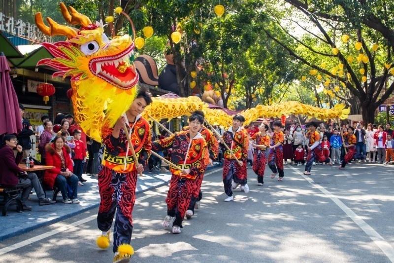 东莞市文化馆联动全市各镇街(园区)分馆,共同打造“龙腾报春 乐享非遗”——东莞迎新春非遗周,精心策划了140多场非遗主题活动,大年初一至大年初七,日均场次超20场。