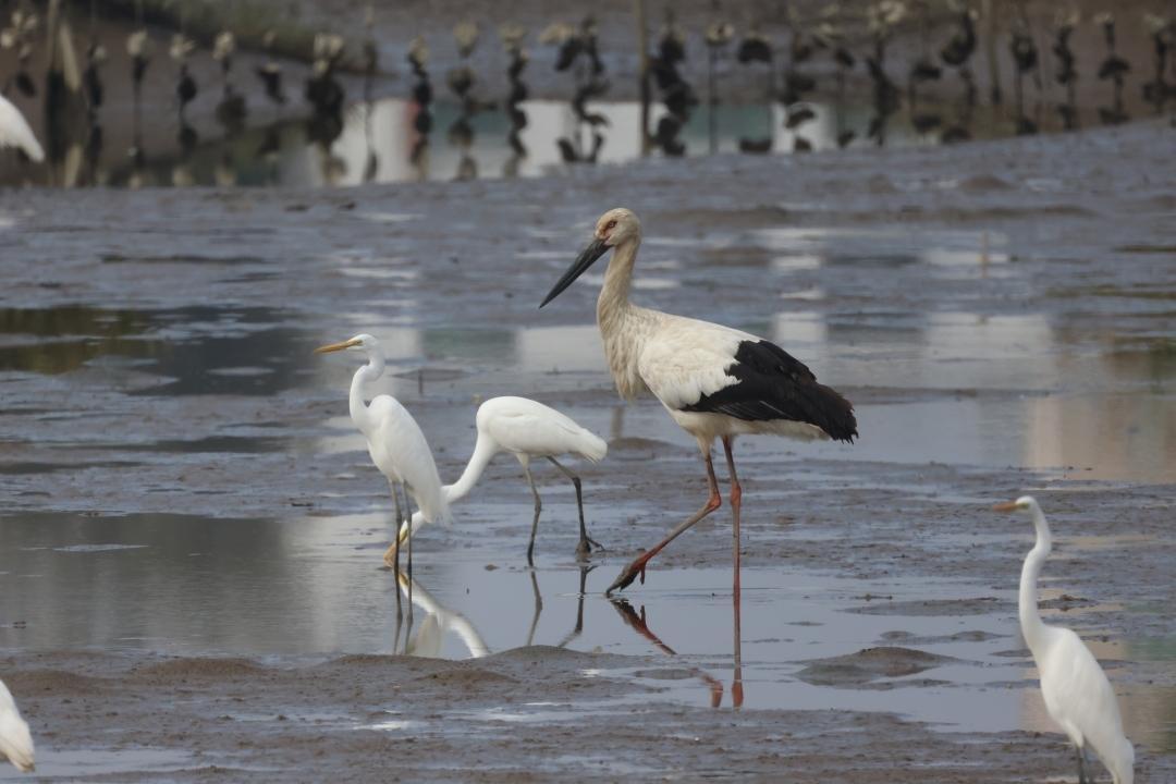 据统计,本次同步监测范围覆盖了广东内伶仃福田国家级自然保护区、广东乳源南水湖国家湿地公园等自然保护地在内的我省沿海滩涂、内陆湖泊等重要越冬水鸟栖息地,共记录物种信息1,700余条,监测到92种水鸟,包括勺嘴鹬、黑脸琵鹭、东方白鹳、黑嘴鸥、小青脚鹬、中华秋沙鸭等19种国家重点保护野生鸟类,其中东方白鹳的种群数量和分布明显提升。1月27日,摄影爱好者还在汕尾东山村湿地拍摄到了白鹤、彩鹳和东方白鹳3种国家一级保护野生鸟类同框出现的罕见画面,其中白鹤属于汕尾首次记录。